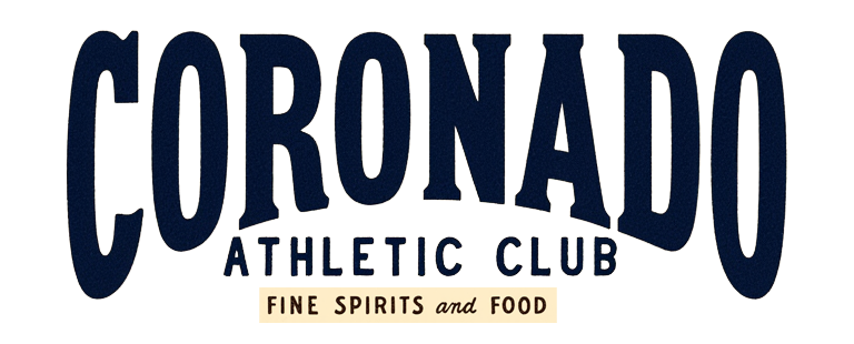 The back bar at The Coronado Athletic Club will stand tall, making full use of the venue’s 15-foot-high ceilings, creating a grand yet inviting focal point. Rich dark wood shelving will extend upward, accented with brass details that enhance the bar’s elegant, old-world charm. A vintage varsity-style scoreboard will serve as the centerpiece, paying homage to the golden era of sports, while two 85-inch framed televisions will seamlessly integrate into the design, ensuring an immersive yet refined sports-viewing experience. A deep navy backdrop with dark wood mouldings will add depth and sophistication, complementing the club’s rich color palette. Brass-edged glass shelves, illuminated by warm, ambient lighting, will showcase a meticulously curated selection of fine spirits, reinforcing the club’s dedication to craftsmanship and quality. Surrounding the bar, shelving adorned with vintage photographs and memorabilia will celebrate the birthplace of naval aviation and the legacy of varsity sports, further immersing guests in the history and prestige that define The Coronado Athletic Club.