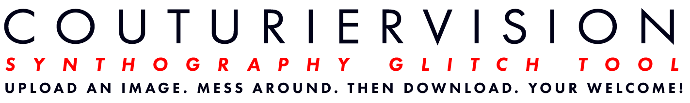 CouturierVision Glitch Tool - Fixed COUTURIERVISION SYNTHOGRAPHY GLITCH TOOL UPLOAD. DESTROY. CREATE. Upload Image CLICK TO UPLOAD Reset Download Configure ✕